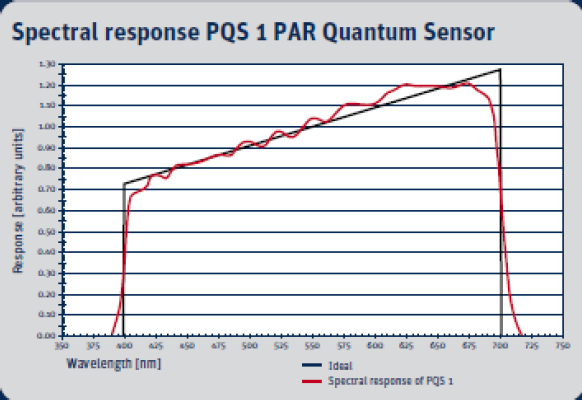 光在植物和作物生長中發(fā)揮著至關(guān)重要的作用。吸收的光(主要由葉綠素)驅(qū)動光合作用過程,二氧化碳和水轉(zhuǎn)化為葡萄糖和氧氣。使用光的這個(gè)過程稱為光合有效輻射(PAR)。實(shí)際響應(yīng)效果取決于植物或農(nóng)作物。一個(gè)標(biāo)準(zhǔn)化的PAR在可見光光譜響應(yīng)范圍在400 nm和700 nm,是由McCree(1972)